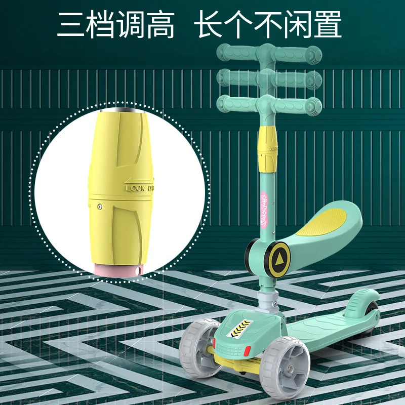 Children 3 In 1 Kick Scooter Folding Skateboard Kids Adjustable Height Flashing Light 3 Wheels Foot Scooters Boy Girl Scooter