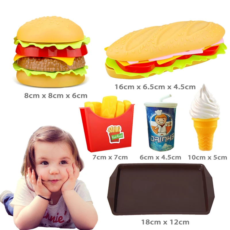 17 reviews for Children Pretend Simulation Food Toys Baby Play House Hamburger Hot dog French Fries Kitchen Set Toys Fast Food Educational Toys