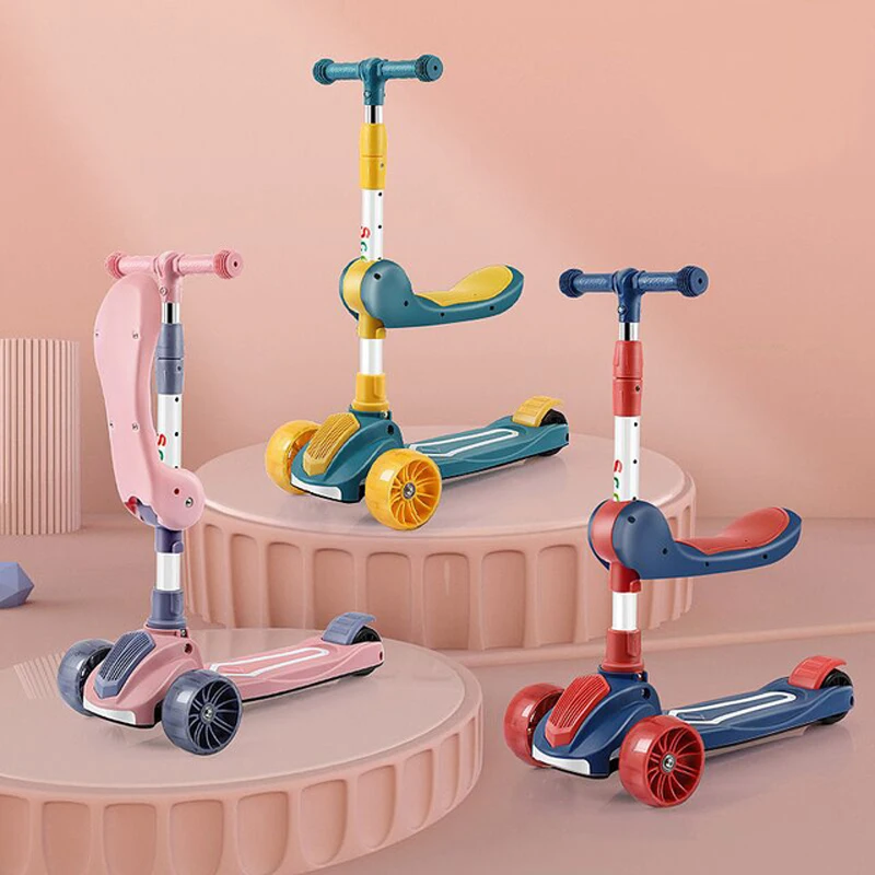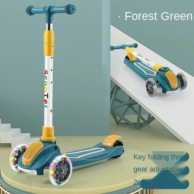 Children’s Kick Scooter Folding Skateboard Kids Adjustable Height Flashing Light 3 Wheels Foot Scooters Boy Girl Scooter Gifts