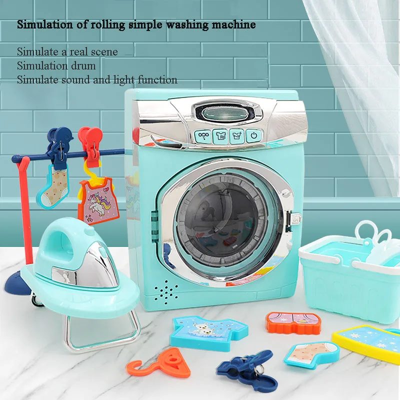 Children’s pretend play house toy simulation electric rotatable washing machine light music toy set girl children’s gift