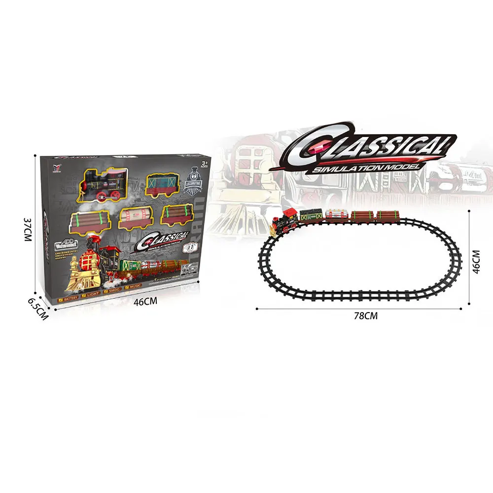 Christmas Electric Rail Car Train Toy with Smoke Simulation Classical Model Children’s Electric Railway Train Set for Boy
