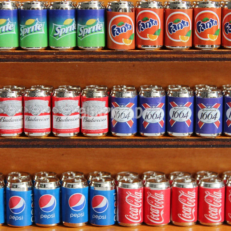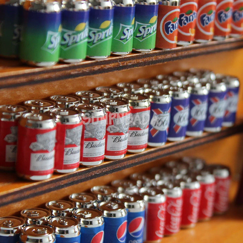 perfect I/6 scale soda cans, made of solid metal, labels are attached, very nicely made