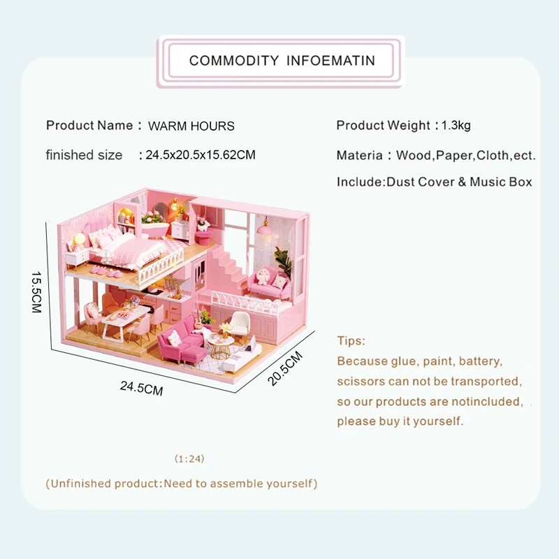 3 reviews for Cutebee DIY Dollhouse Furniture Wooden Dollhouse with LED Light Best Children’s Birthday Gift