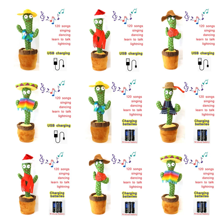 Dancing Cactus 120 Song Speaker Talking USB Charging Voice Repeat plush Cactu Dancer toy talk Plushie Stuffed toys for Baby Girl