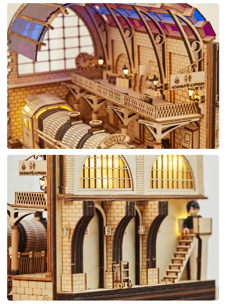 Be the first to review “DIY Magic Movie Platform Nine and Three-Quarters Diagon Alley Book Nook Shelf Kit Miniature Train Station with Light Toys Gifts” Cancel reply