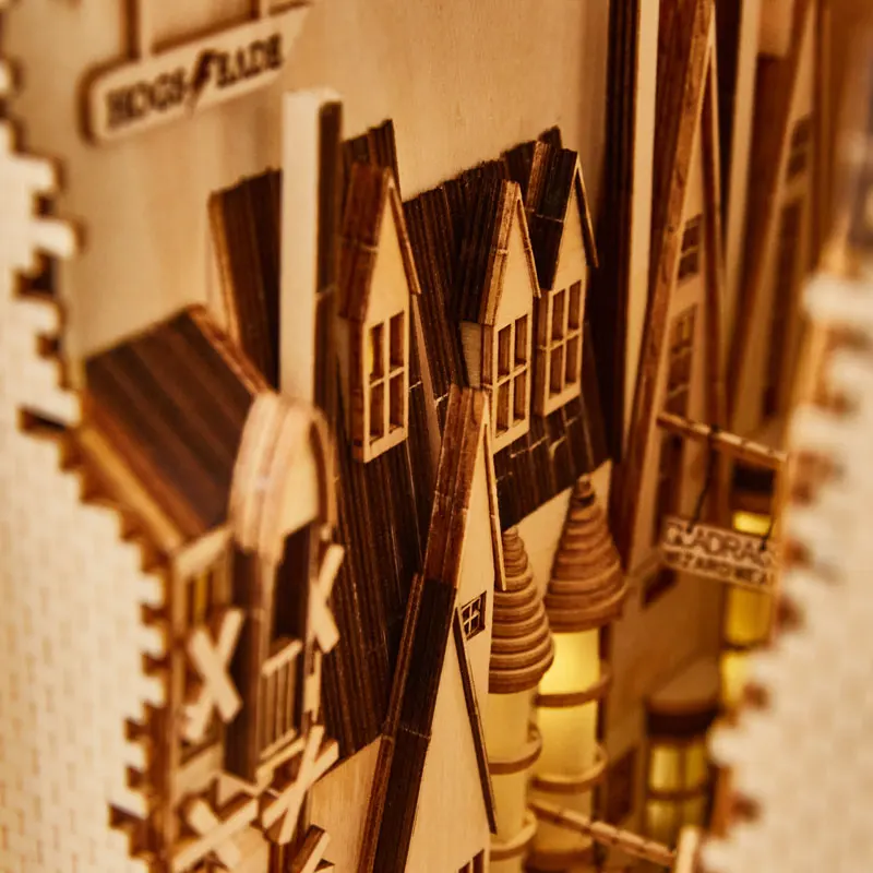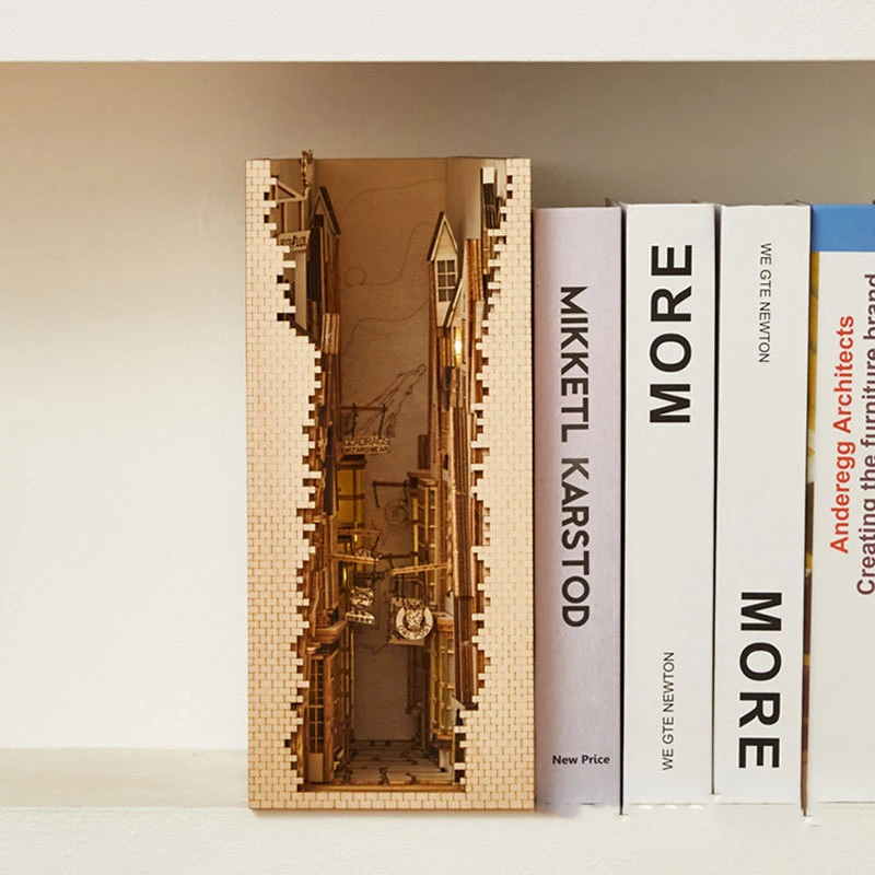 DIY Wooden Dragon Alley Book Nook Shelf Insert Kits Mysterious Ancient Streets Miniature with Furniture Art Bookends Toys Gifts