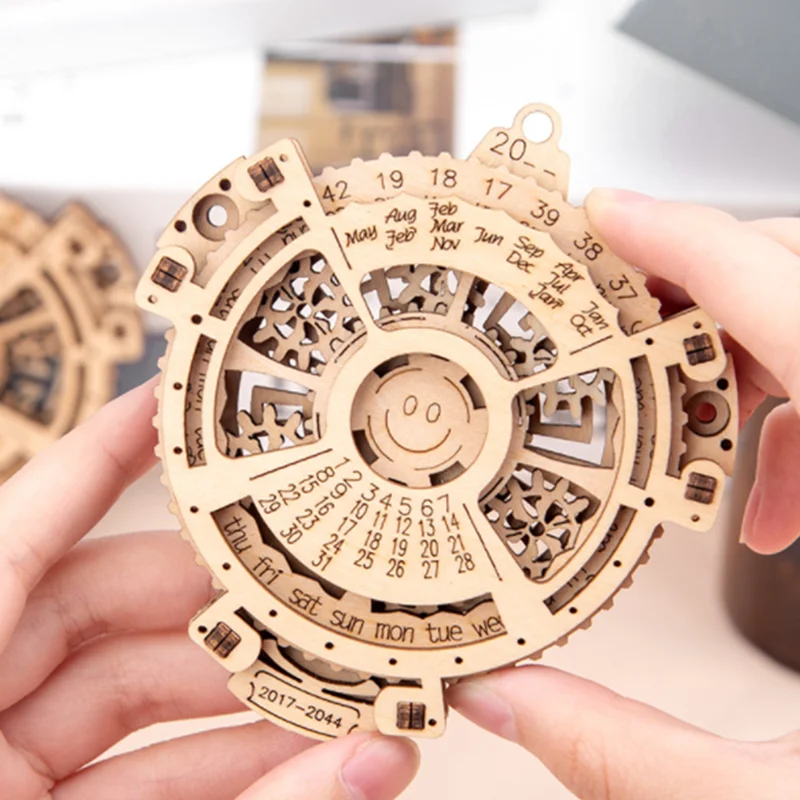 DIY Wooden Machinery Perpetual Calendar Gear Rotating Assembly Model Nordic Desktop Creative Ornaments Wooden Assembles Toy