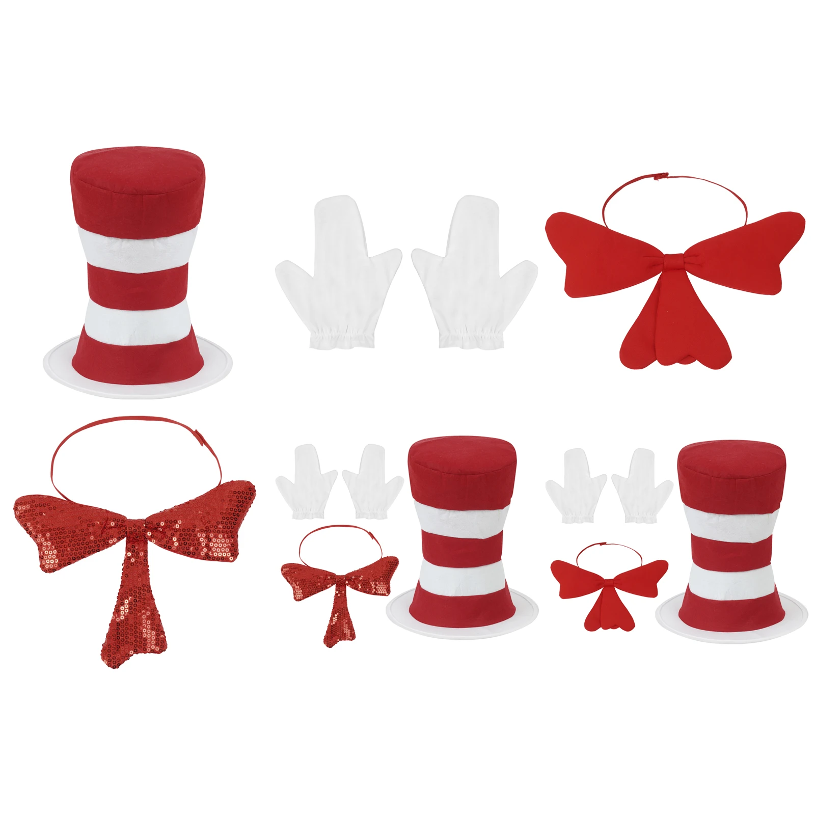 Dr Cosplay Costume Accessory Party Hat Short Gloves Sequins Bowknot Kit Cat in Hat Costumes for Adults Kids Halloween Christmas