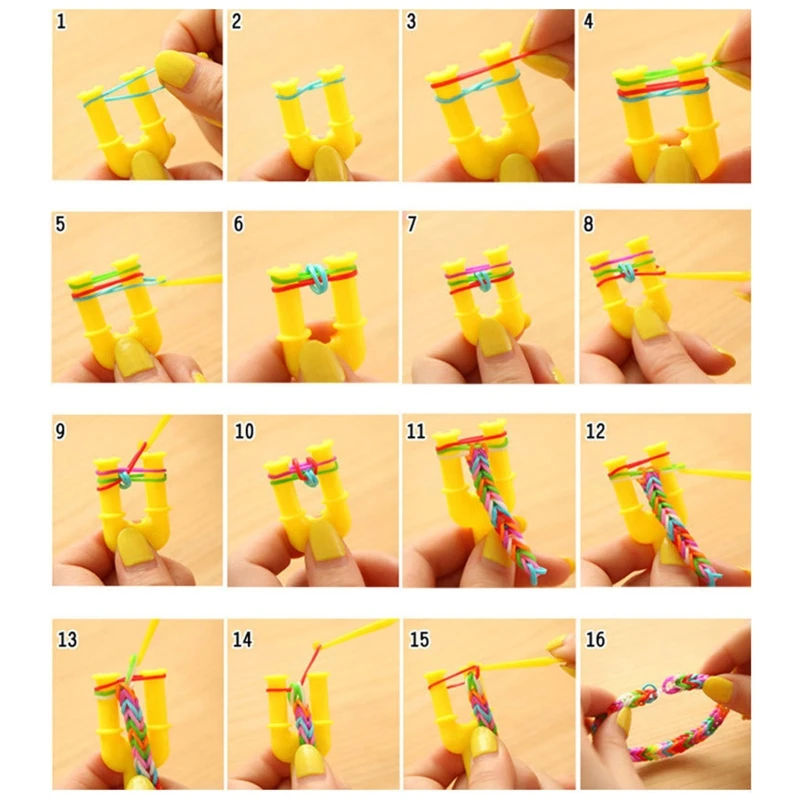 Elastic Rubber Colourful Loom Bands Starter Box with Crochet Weaver Rainbow Bracelet Weaving Knitting Tool Kit for Kids Children