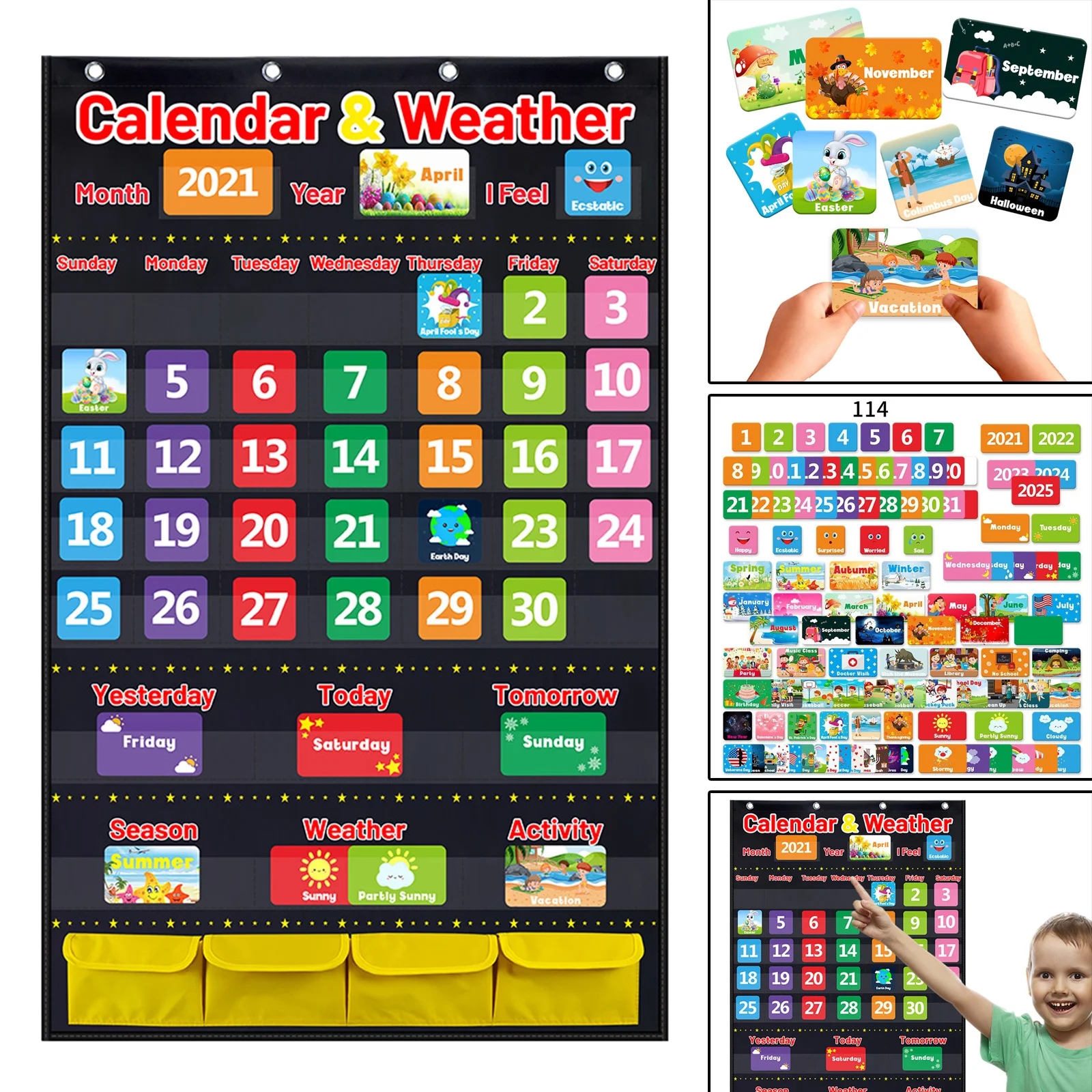 Be the first to review “Fabric Calendar Weather Pocket Chart Classroom Homeschool Supplie Montessori Educational Toys For Kids Children” Cancel reply