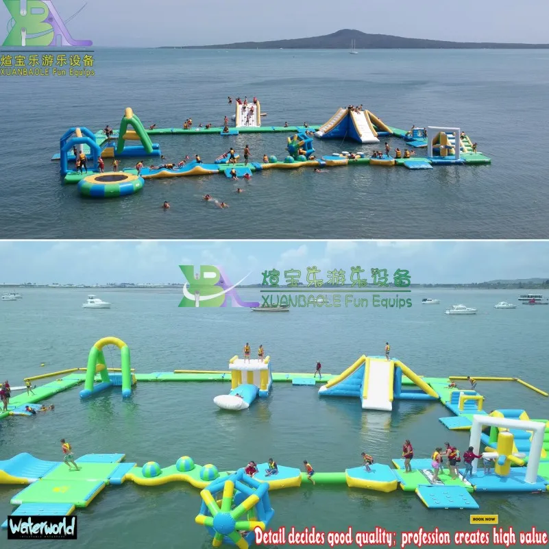 Fun For Wake Island Inflatable Water Park Inflatable Floating Adventure Water Obstacle