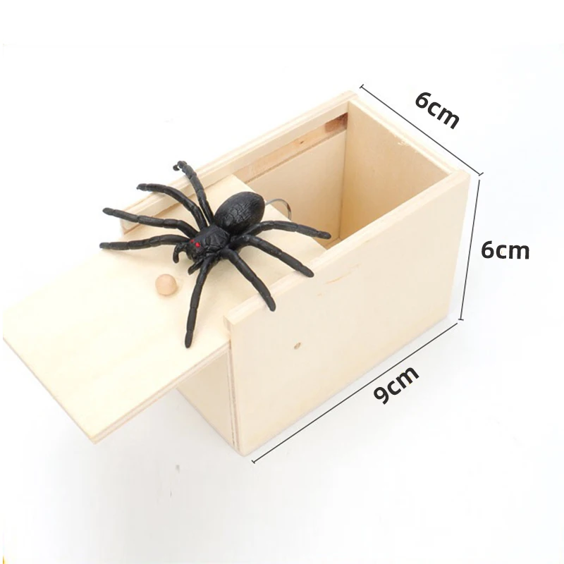 Funny Scare Box Prank Spider Wooden Fidget Anti-stress Interest Play Trick Joke Surprise Adult Halloween Toys For Children Gifts