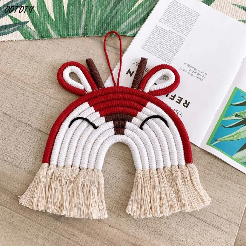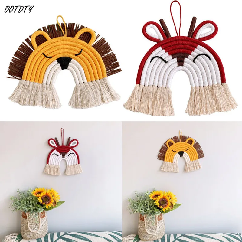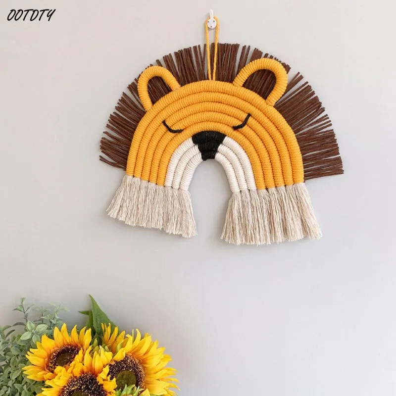 Hand-Woven Rainbow Tapestry Ornaments Wall Tassel Hanging Pendant Cartoon Lion Hanging Toys Kids Baby Room Home Art Decoration