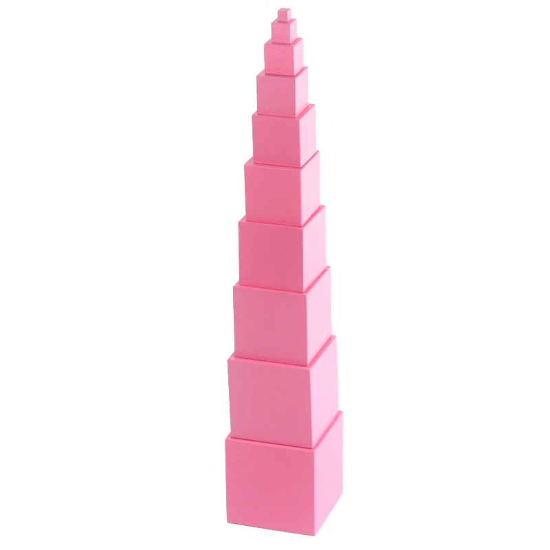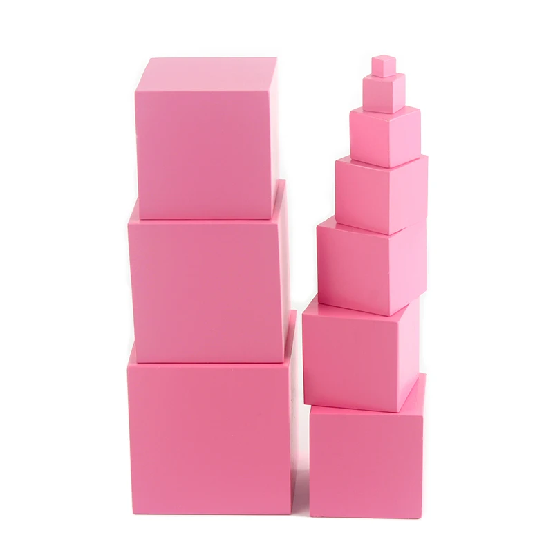 High Quality Wooden Montessori Mathematics Toys Pink Tower Solid Wood Cube 0.7-7CM Early Preschool Educational Children Day Gift