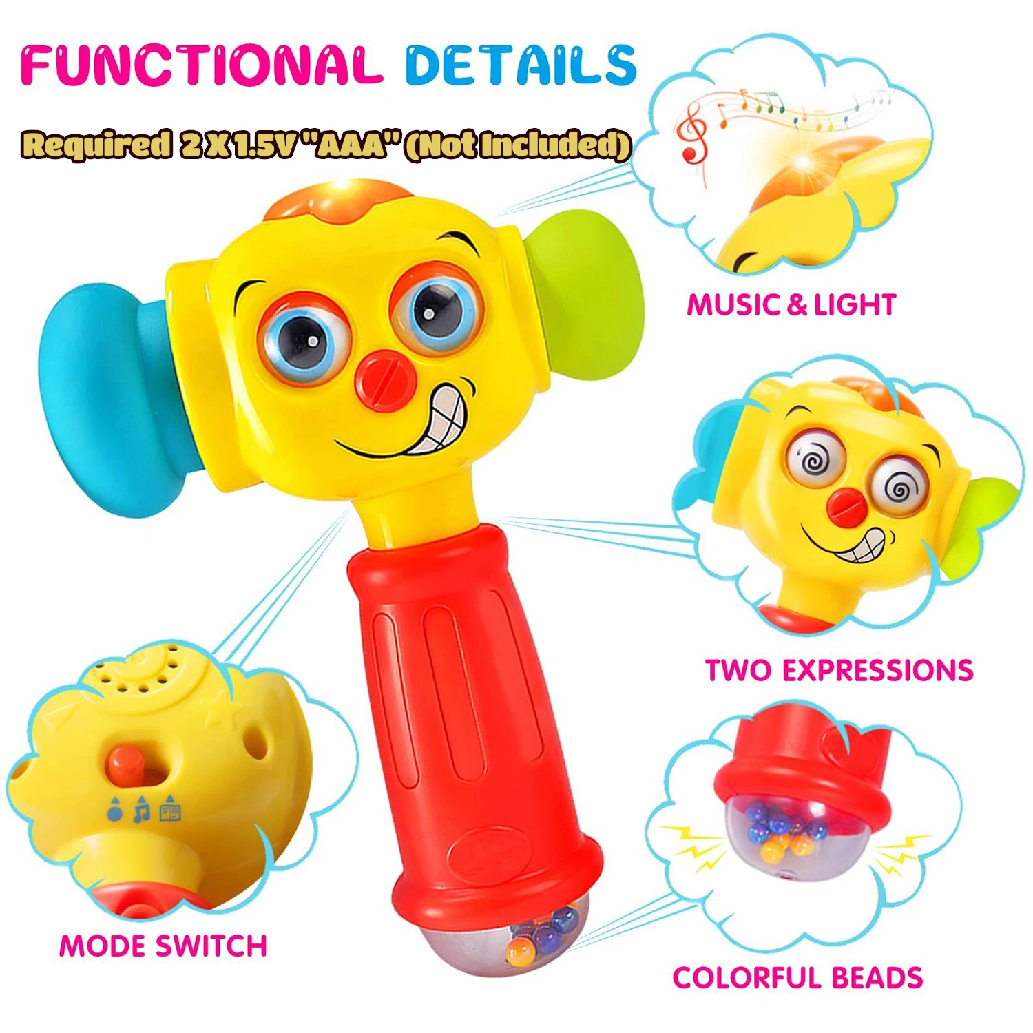 HOLA Baby Boy Toys Light& Musical Baby Hammer Toy for 12 to 18 Months Up Funny Changeable Eyes Baby Hammer Toy
