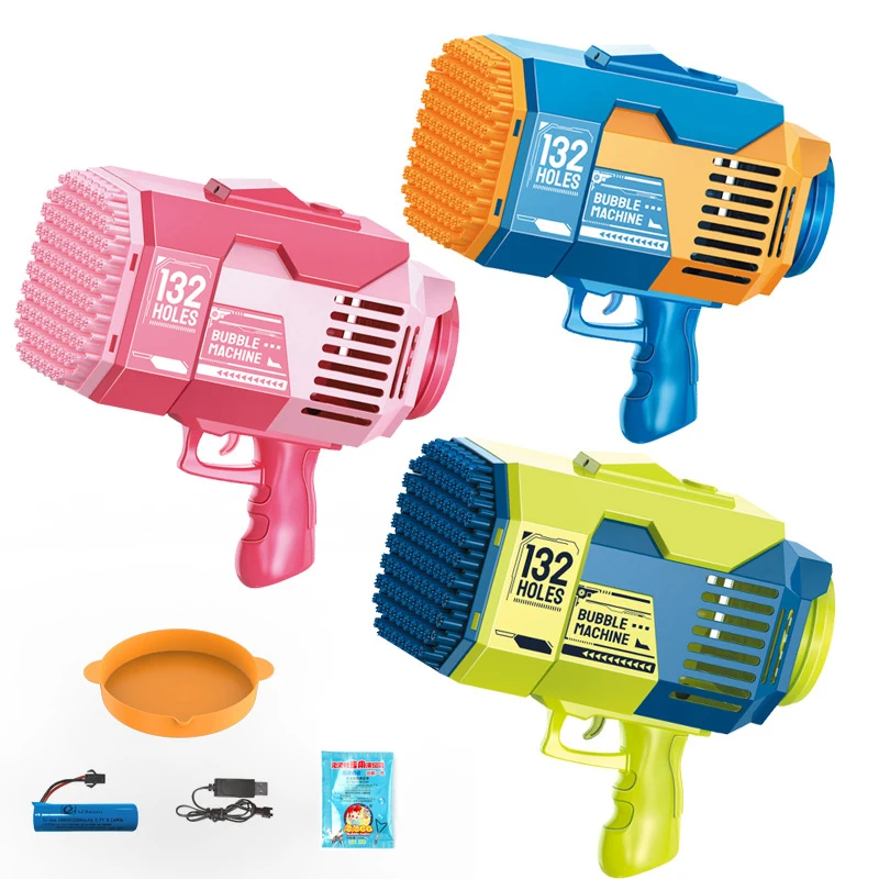 Hot Gatling Bubble Gun Toy 132/69/64/44Hole Charging Electric Automatic Bubble Machine Summer Outdoor Soap Water Children Toys