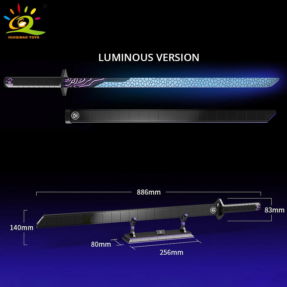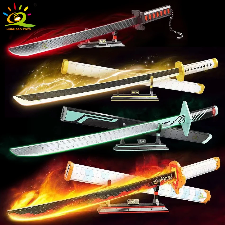 HUIQIBAO Samurai Nichirin Sword Building Blocks Rengoku Blade Katana Demon Slayer Anime Butterfly Knife Weapon Bricks Child Toys