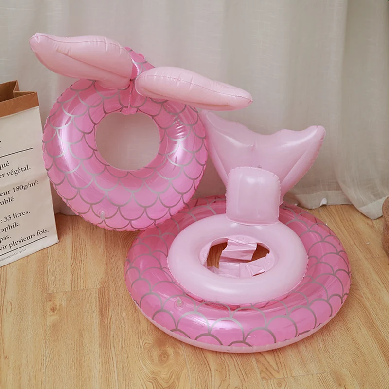 Inflatable Swimming Ring for Kids Pink Mermaid Shape Girls Safety Baby Seat Float Swim Circle Summer Beach Children Water Toys
