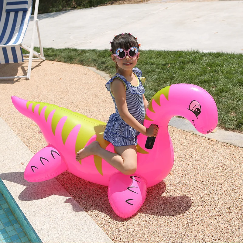 Inflatable Water Park Cartoon Children Pink Dinosaur Playing Water Surfing Toys Ride On Toy Pool Rafts Plesiosaurus Animal