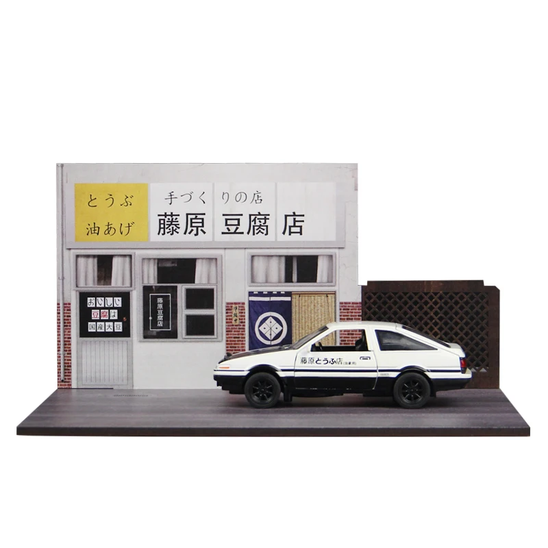 Initial D Fujiwara Tofu Shop Takumi AE86 Alloy Car Model Pizza Shop Cafe Scene background Display Stand