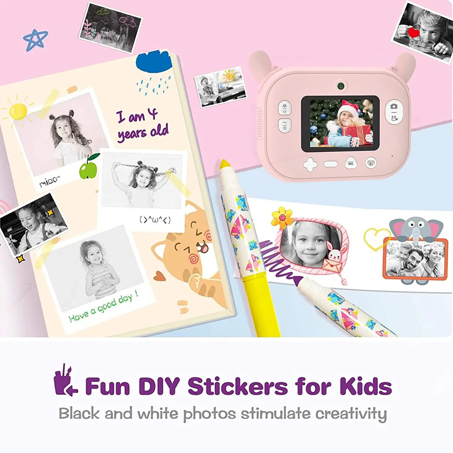 Amazing instant camera, my daughter very satisfied, she likes taking pictures very much, this camera takes pictures very clearly, and also has a printing function, instant print pictures, link DiDiCam APP, can print phone photos , print banners, print borders, and print some patterns , kids can fill in the color with color pens, stimulate kids imagination, recommended to purchase, a practical and funny kids gifts.delivery time about 7days very fast!