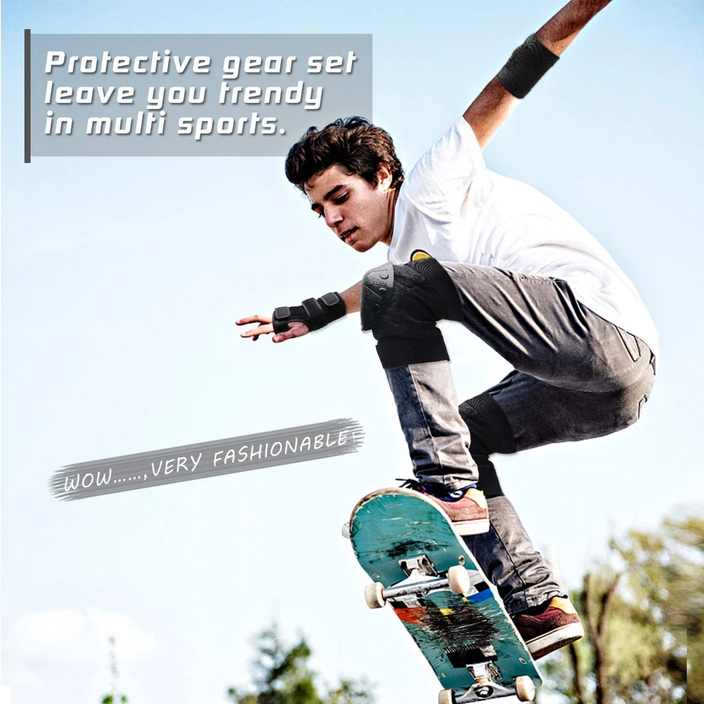 Knee Pads Elbow Pads Wrist Guards 3in1 Skateboard Protective Gear Set for Skateboarding Cycling Skating Scooter Bike Kids/Adults