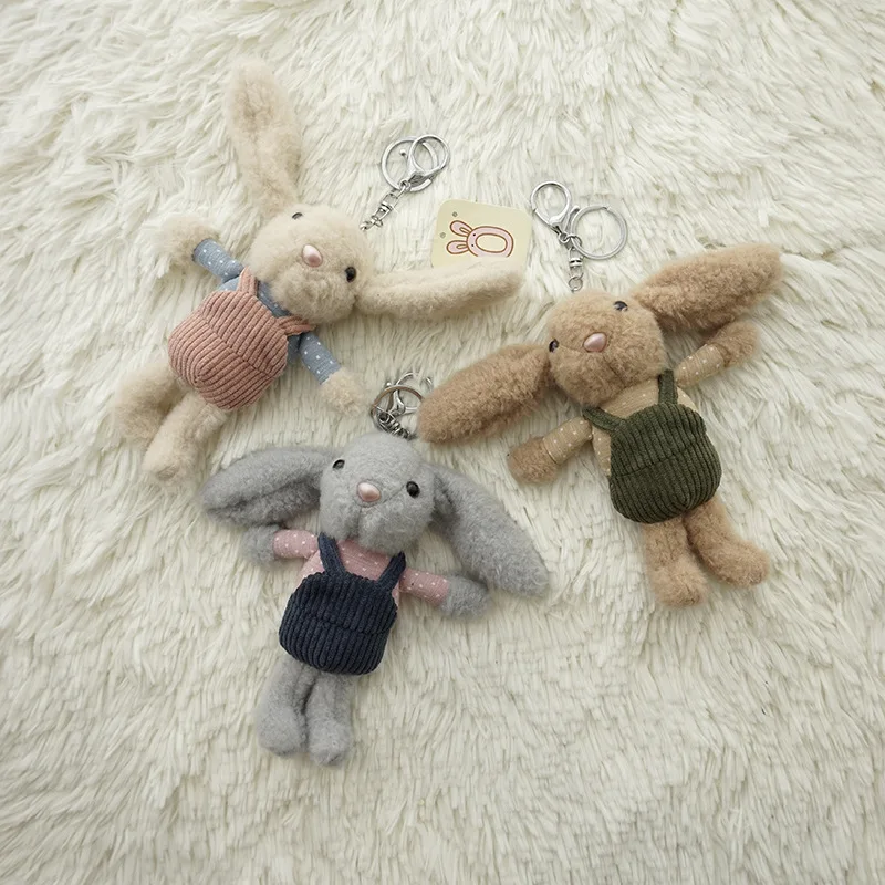 Korea Cute Long-eared Rabbit Keychain Plush Bunny Car Student Backpack Pendant Stuffed Soft Doll Bag Decoration Gift