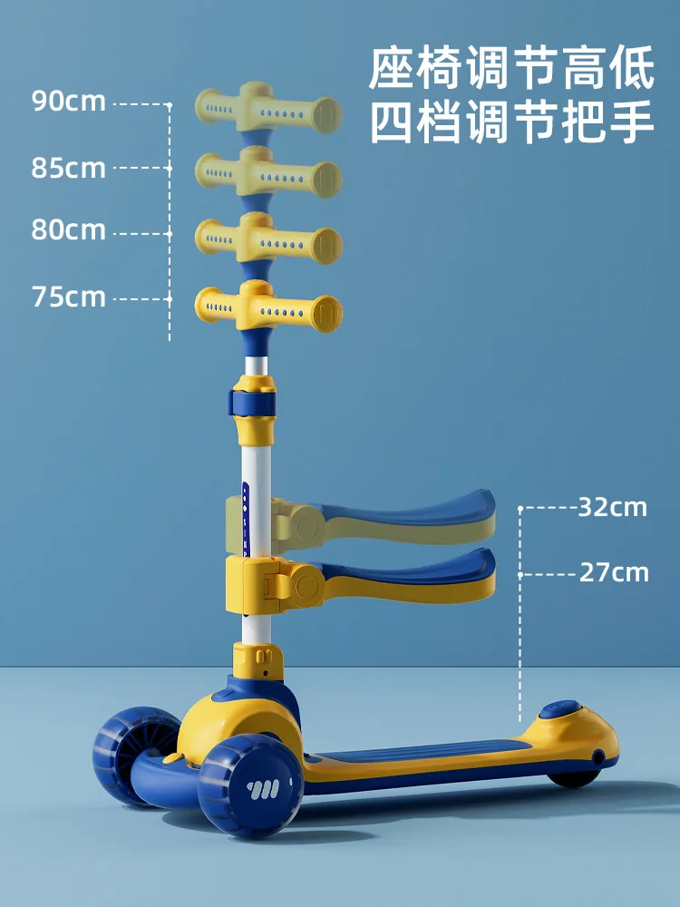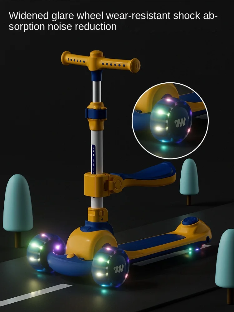LazyChild 2-12 Years Old Children’s Scooter Foldable Flashing Bicycle Multi-Function Three-Wheeled Scooter DropShipping