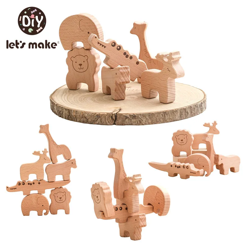 Let’s Make Children Wooden Beech Animal Constructor Stacking Toys Montessori Educational Baby Balance Training Wooden Baby Toys