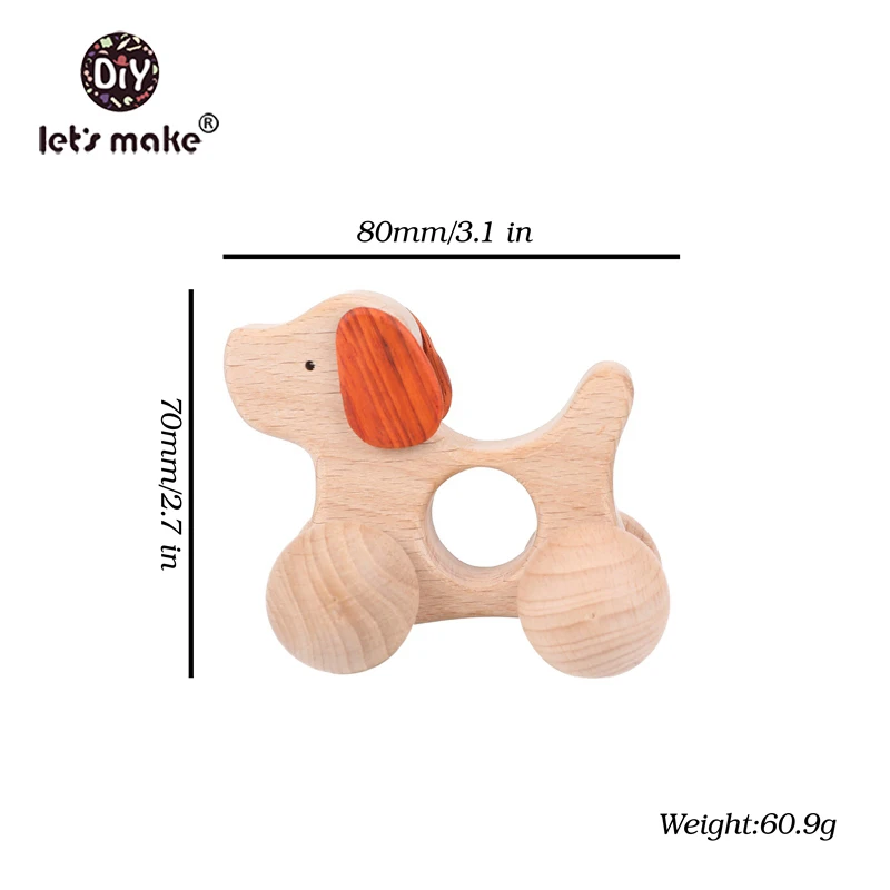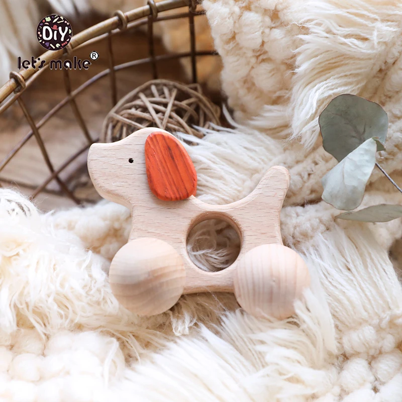 Let’S Make Wooden Baby Toys Dog Car Gym Wood Animal Rattles Horse Car Wooden Teether Kids Toys