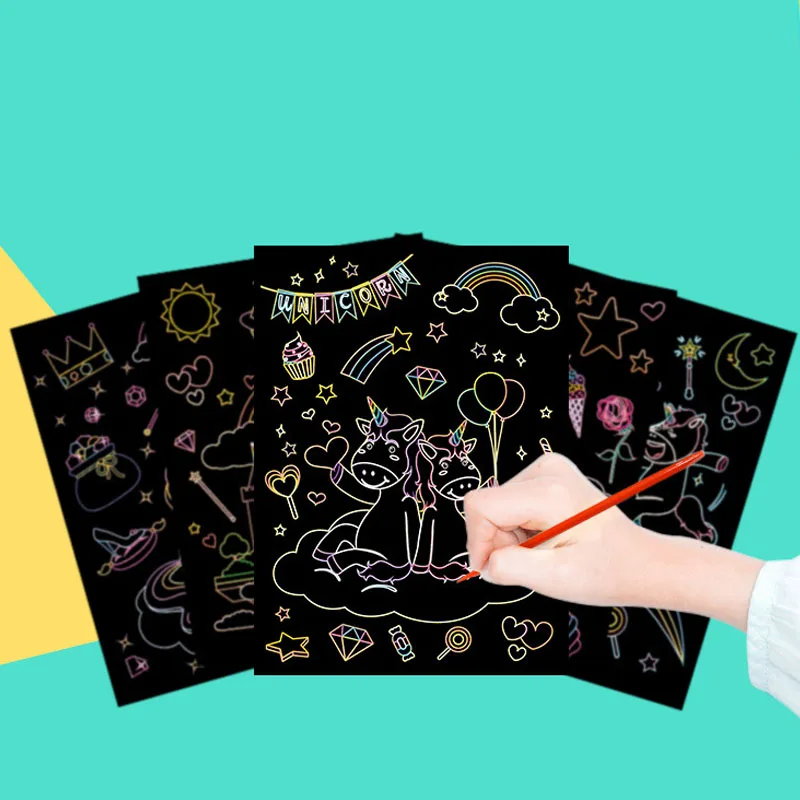 Magic Rainbow Color Scratch Art Painting Paper Card Kit Cartoon Dinosaur Drawing Board Kids DIY Educational Toys Montessori Toys