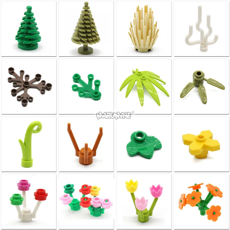 Marumine MOC Tree Plant Accessories Parts Building Blocks Compatible Flower Green Grass Bush Leaf Jungle Garden Set City Bricks