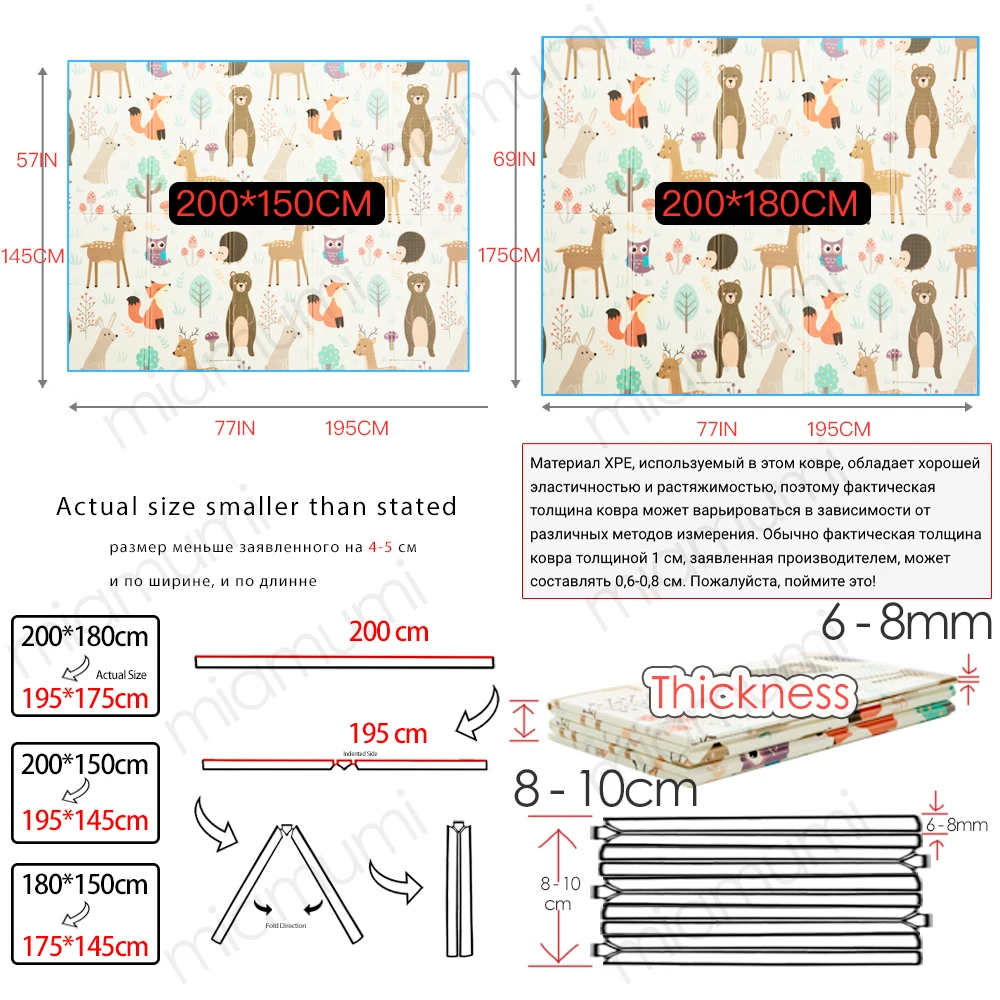 Miamumi Foldable Baby Floor Play Mat Children’s Carpet Kids Sport Rug Activity Foam Puzzle Dinosaur Bear Fox Crawling Pad Safety