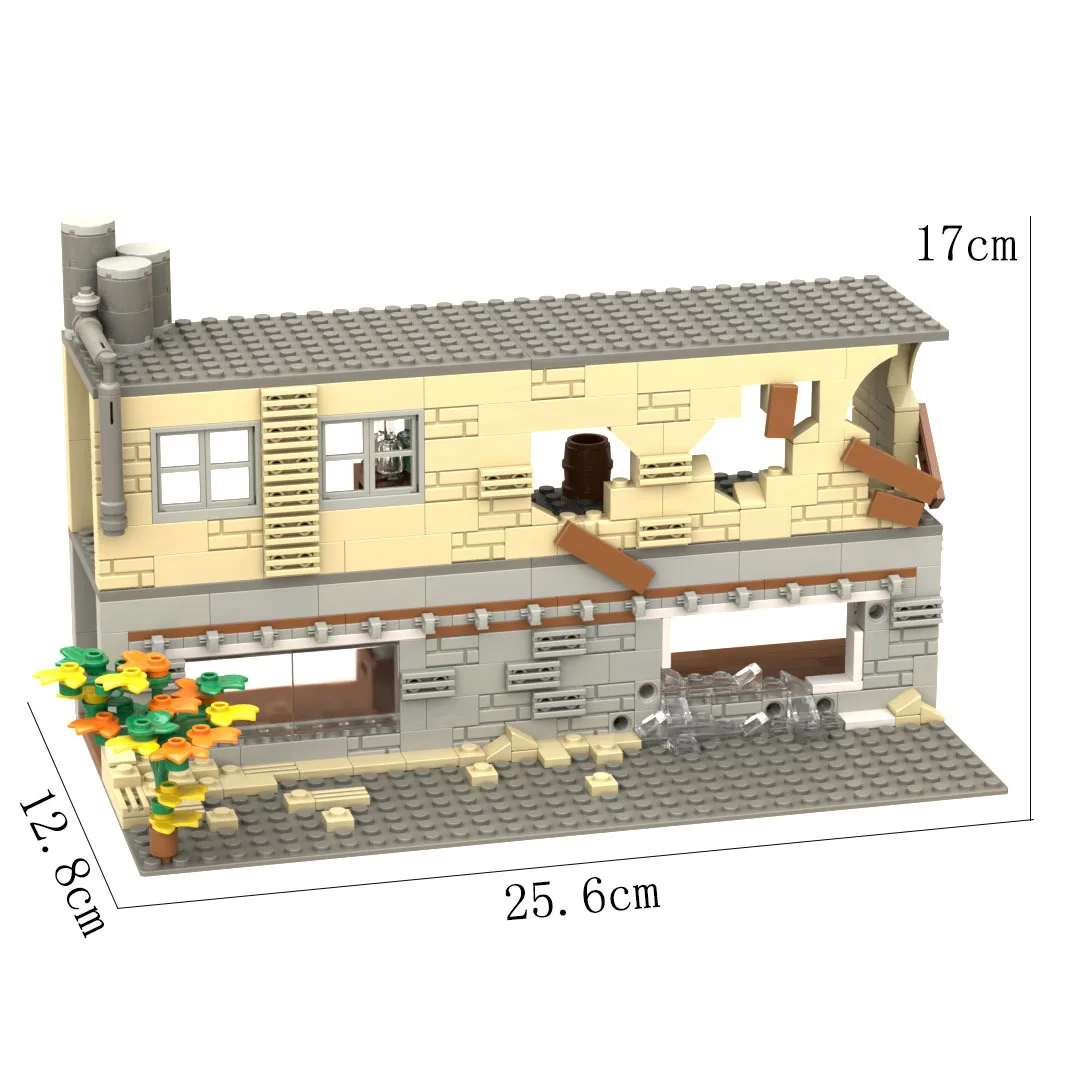 MOC Parts WW2 Abandoned Ruined Base Military Building Blocks Army Soldier DIY Scenes Bricks Pack Construction Toys Boys Gifts