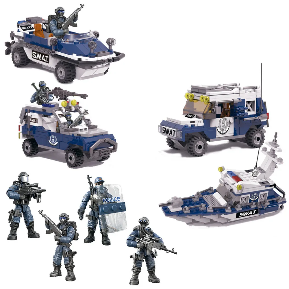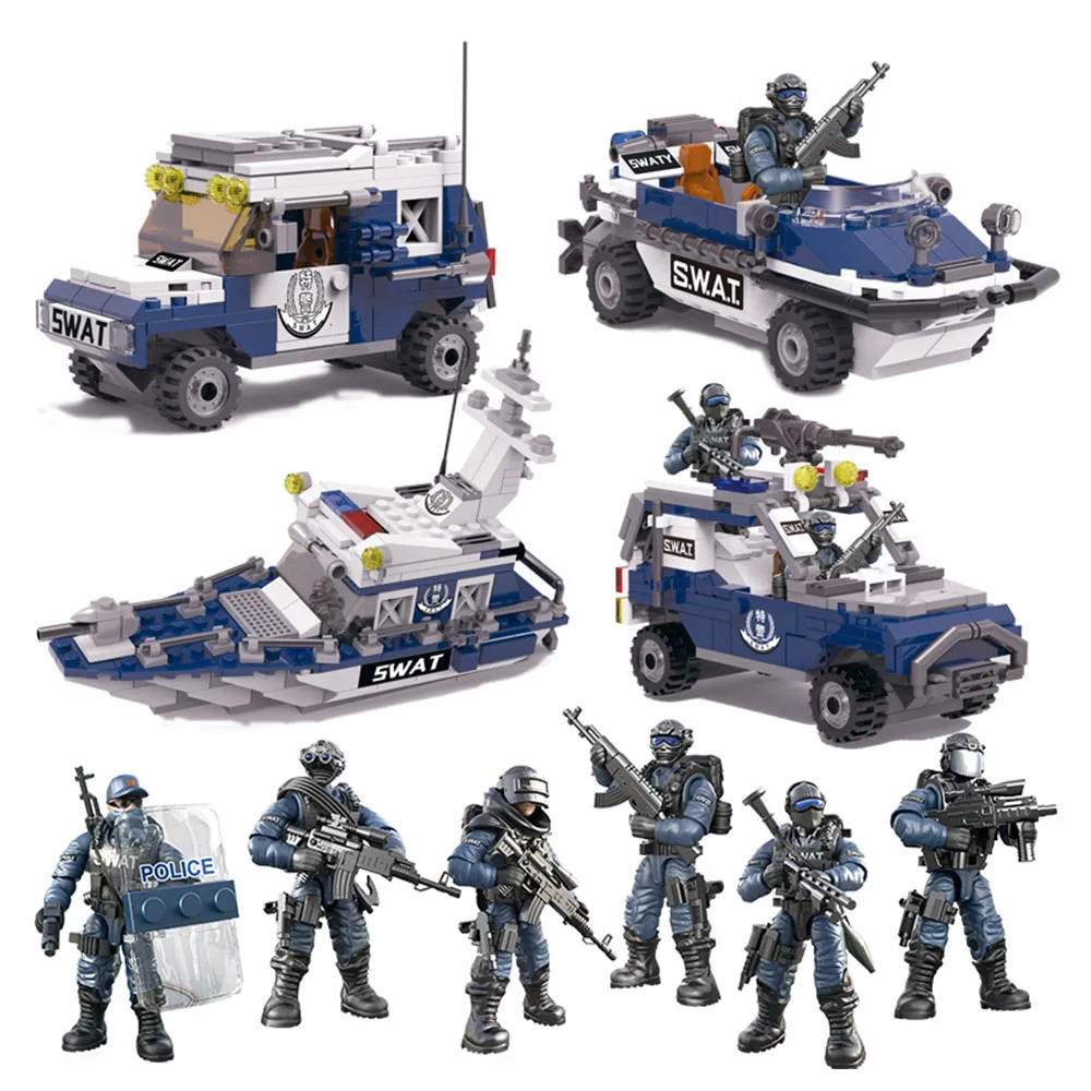 Modern Army Military Soldier City Police SWAT Tank Artillery Model Building Blocks Bricks Kids Toys Gift