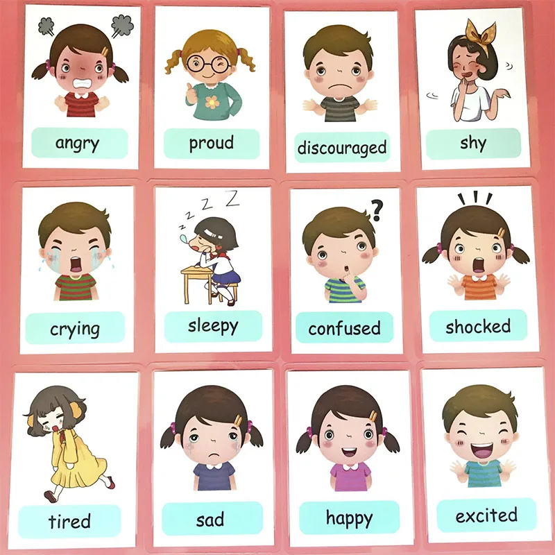 Montessori Baby Emotion Learning Card Cartoon English Emotion Flash Cards for Children Kids Funny Memory Exercise Game