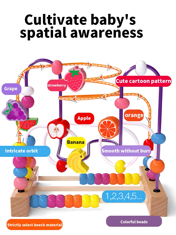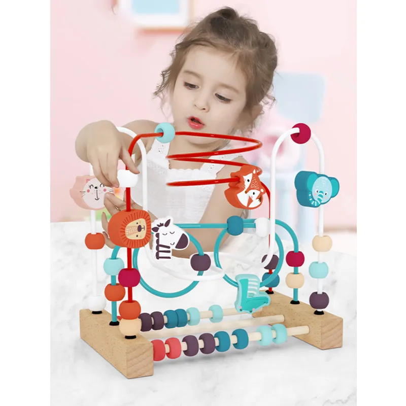 Montessori Educational Toys Wooden Circles Bead Wire Maze Roller Coaster Abacus Puzzles Baby Early Educational Toy For Children