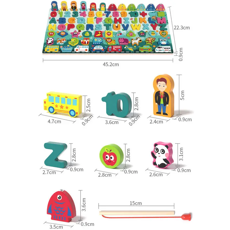 Montessori Educational Wooden Toys Children Busy Board Math Fishing Children’s Wooden Preschool Montessori Toy Counting Geometry