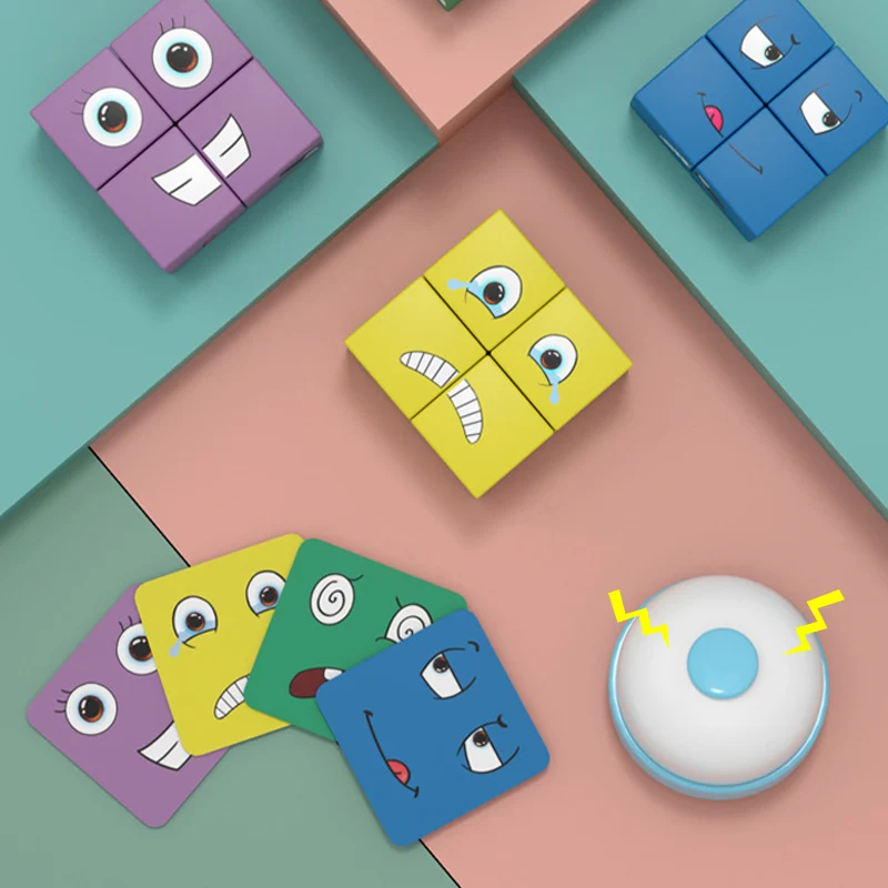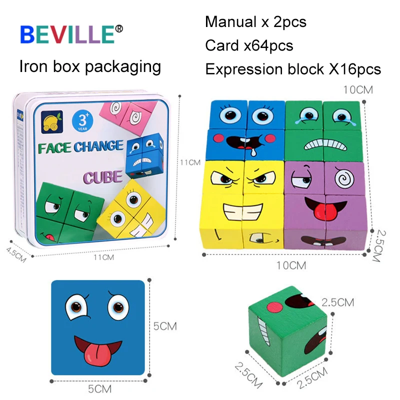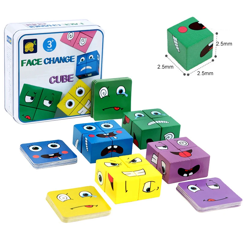 Montessori Expression Face-changing Cube Early Learning Preschool Teaching Intelligence Match Puzzle Wooden Educational Toys Kid