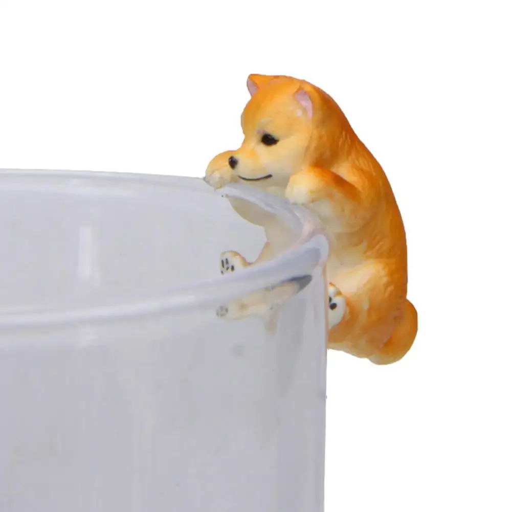 New cute pets puppy Shiba Inu on the edge of cup glass Model figures dog figurine Christmas Gift Kids Toy Cute Animal Model