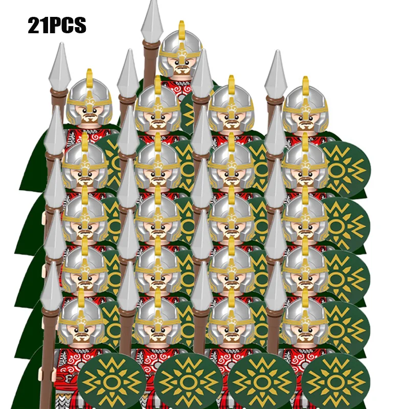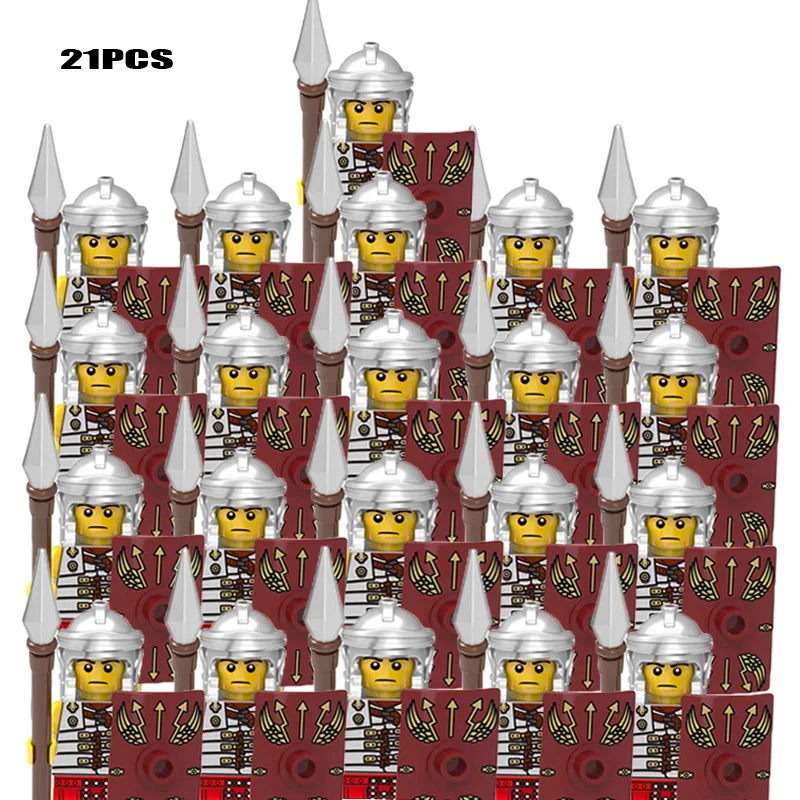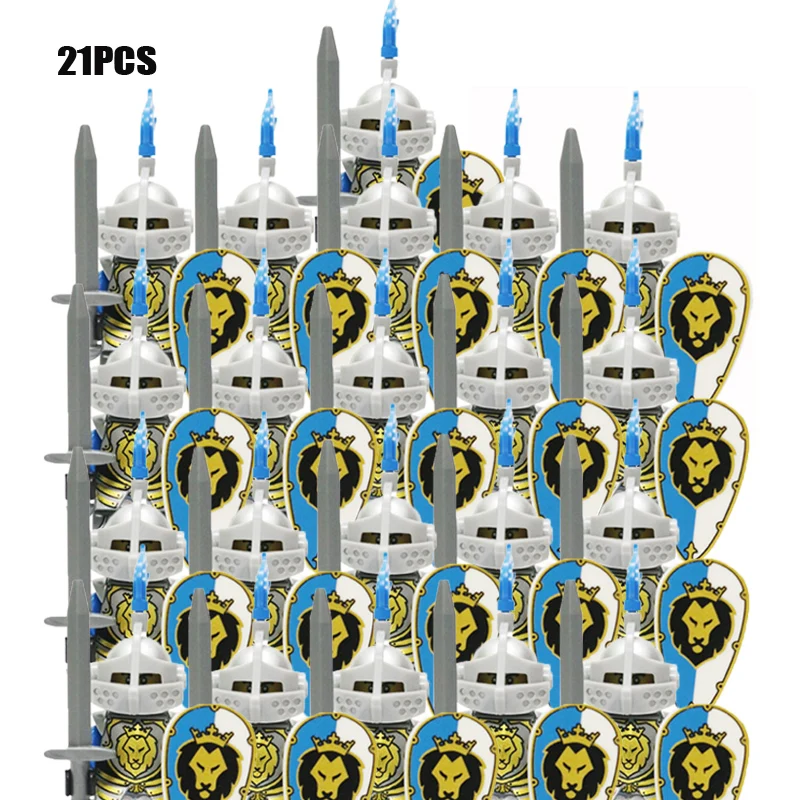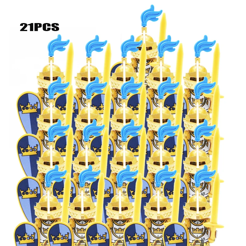 Oeny 21 Stuks/set Castle Royal King’s Knight Rome Spartacus Medieval Age Soldiers Red Lion Figure Compatible Building Blocks