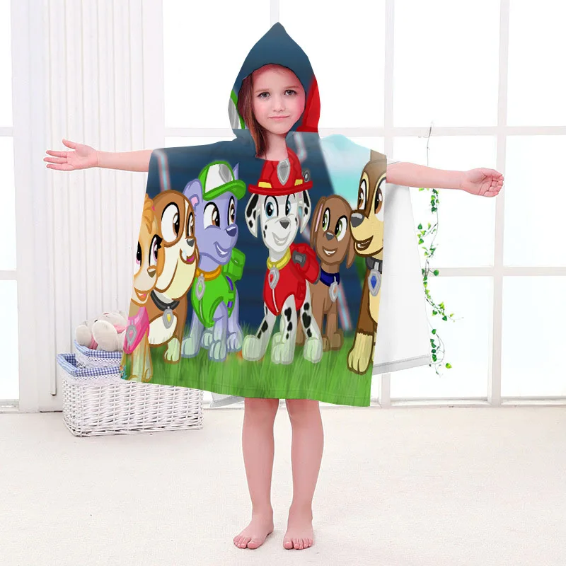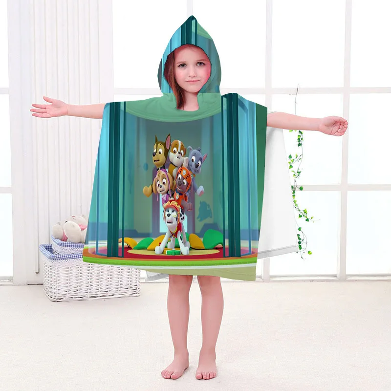 PAW PATROL Kids Bathrobe Spin Master Home Bath Wearable Towel Cotton Hooded Cape Bath Towel Beach Towel Comfortable Cute Gift