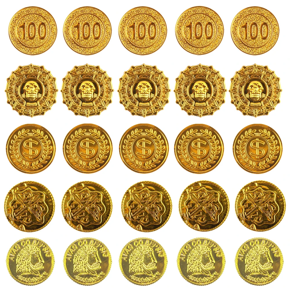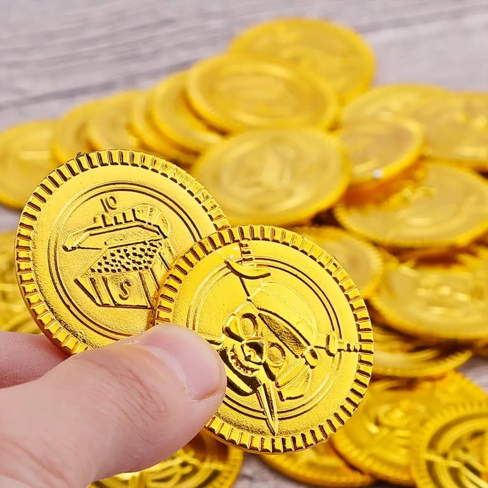 Pirate Gold Coins Plastic Set Gold Treasure Chest Coins for Play Favor Pirate Party Treasure Hunt Game Prize Kids Praise Toys