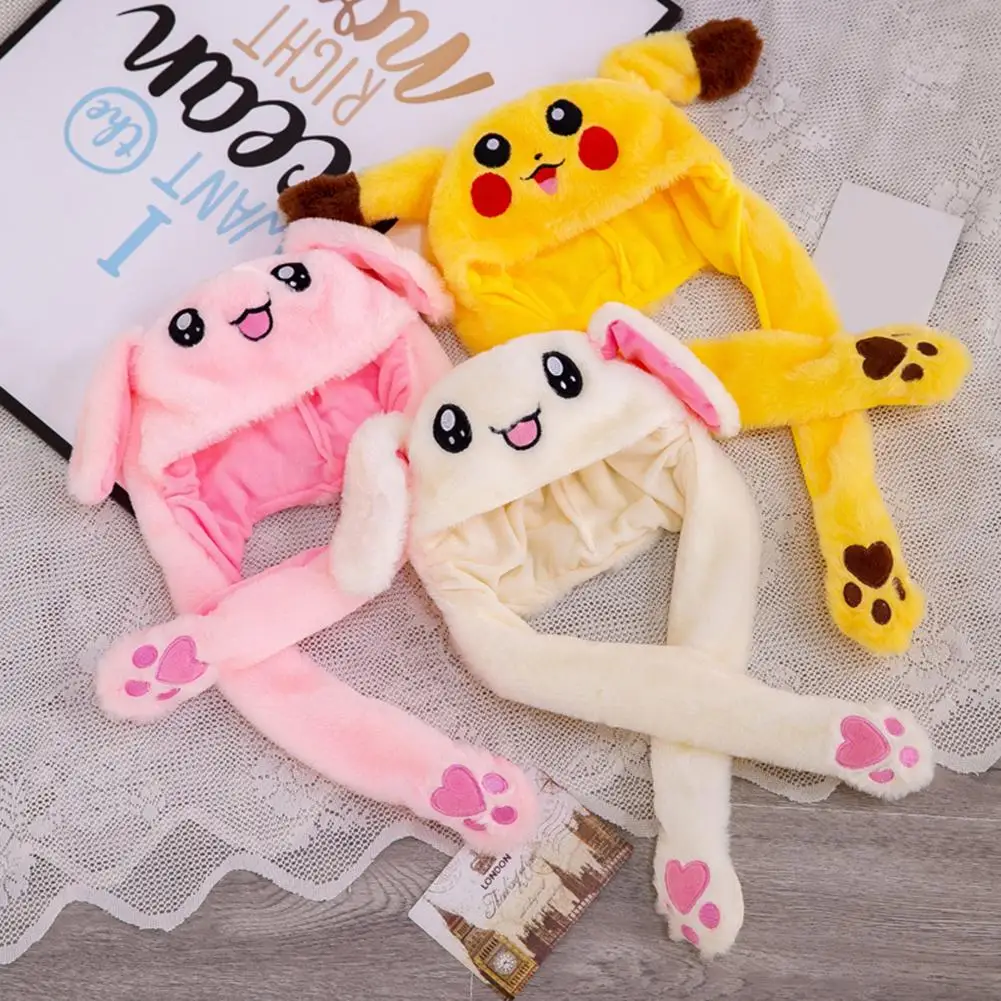Plush Hat Winter Hat Glowing Moving Bunny Ears Hat Touching Ears Kawaii Cartoon Toy Hat Funny Hat Adult Kids Gift Light Top Hat