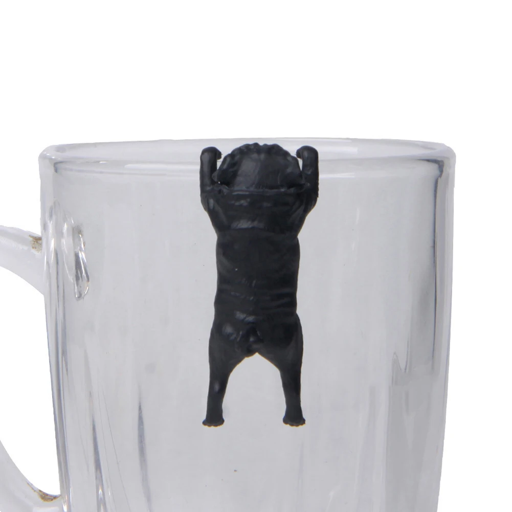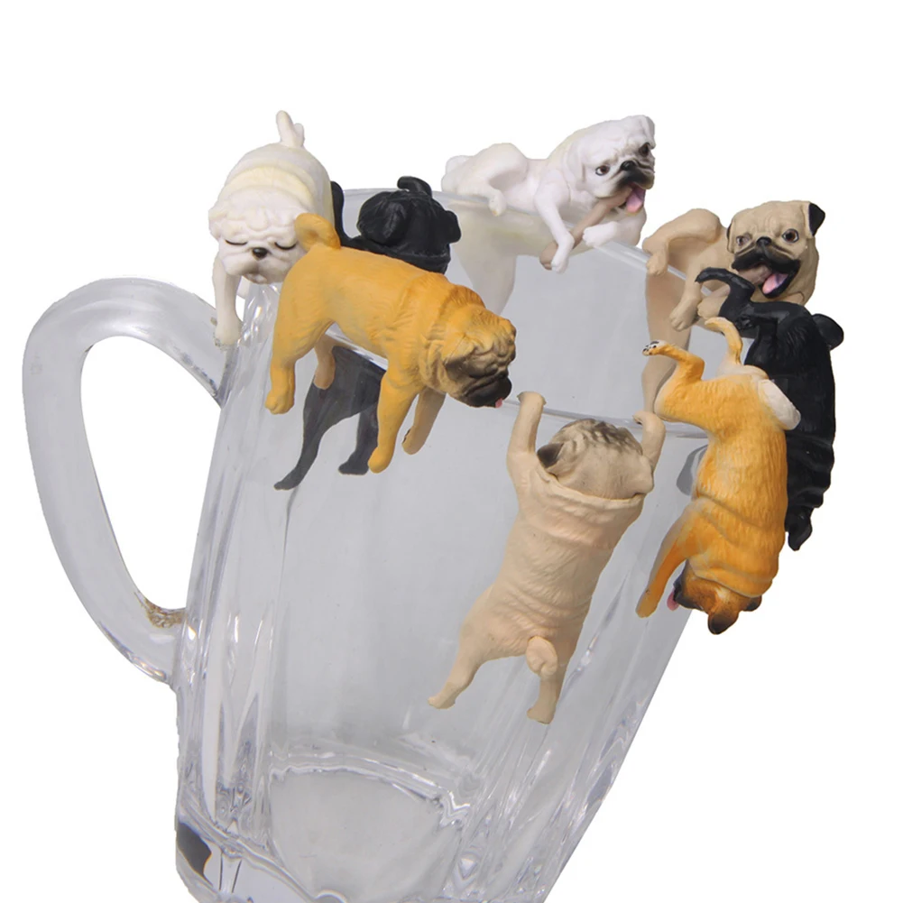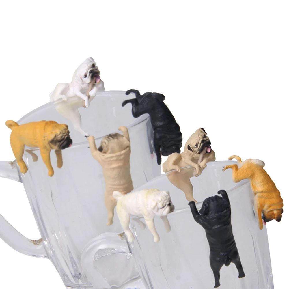 Realistic Mini Pug Dog Figurine Hanging on Cup Rim DIY Fairy Garden Collectible model Accessory