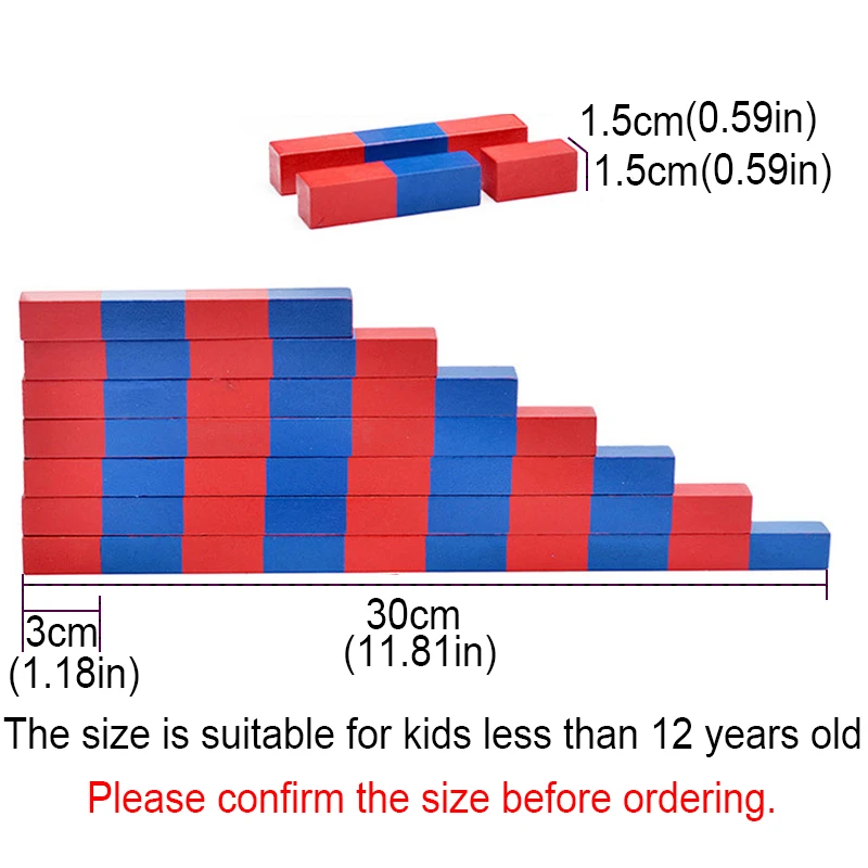 Red and Blue Bars Montessori Mathematics Games Children Learning Teaching Resources Educational Wooden Block Busy Board Math Toy