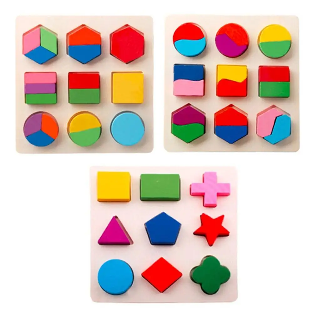 Sale Geometric Shape and Color Matching Toys Wooden 3D Puzzles Baby Montessori Early Educational Learning Toy for Children