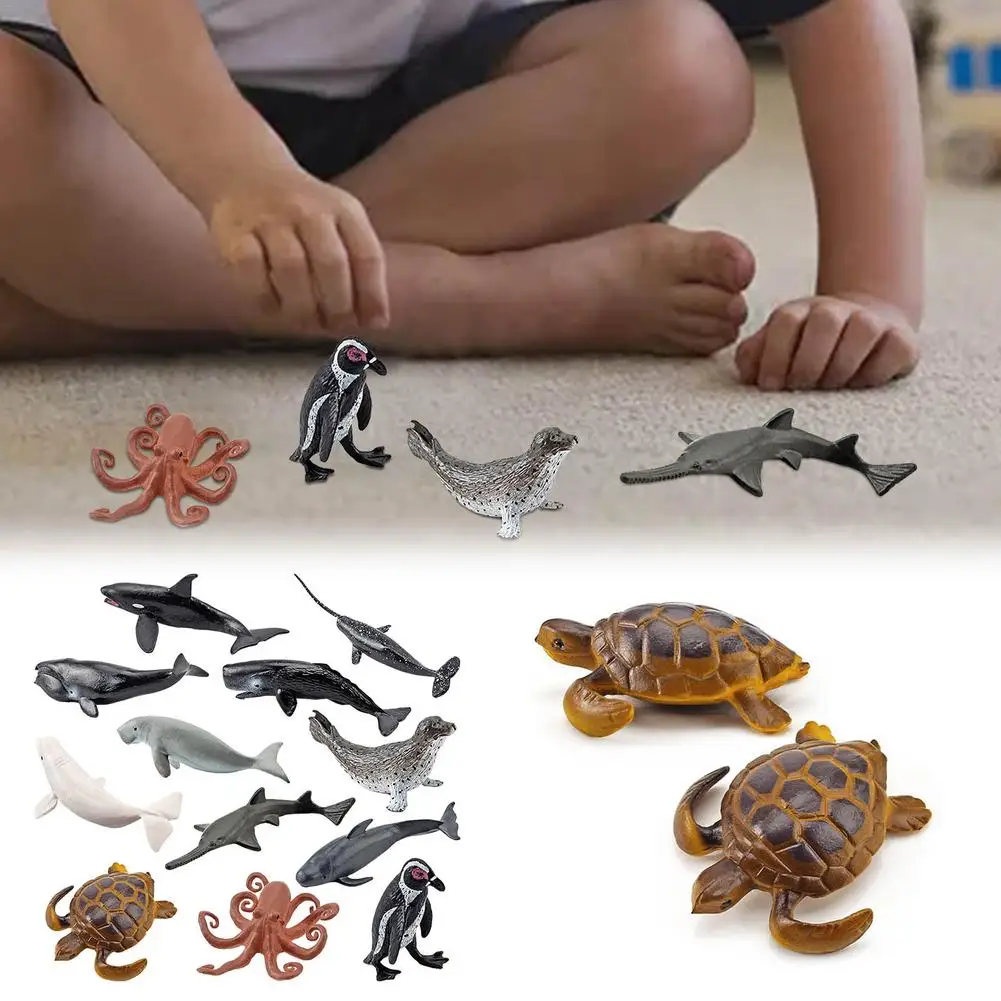Sea Animal Toy Set Animal Sea Figures Ocean Toy For Kids 12-PCS Animal Figurines Set For Sea Lovers Realistic Animal Educational