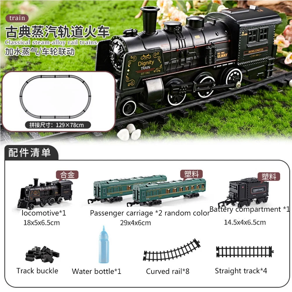 Simulation Model Electric Train Railway Toys Classical Freight Water Steam Locomotive Playset with Smoke Boy Toy