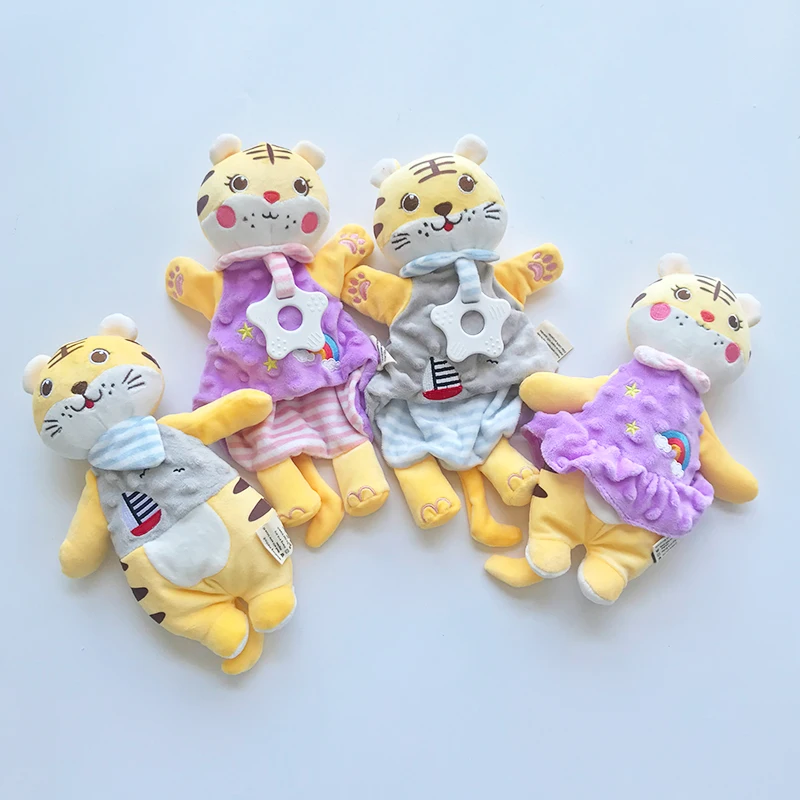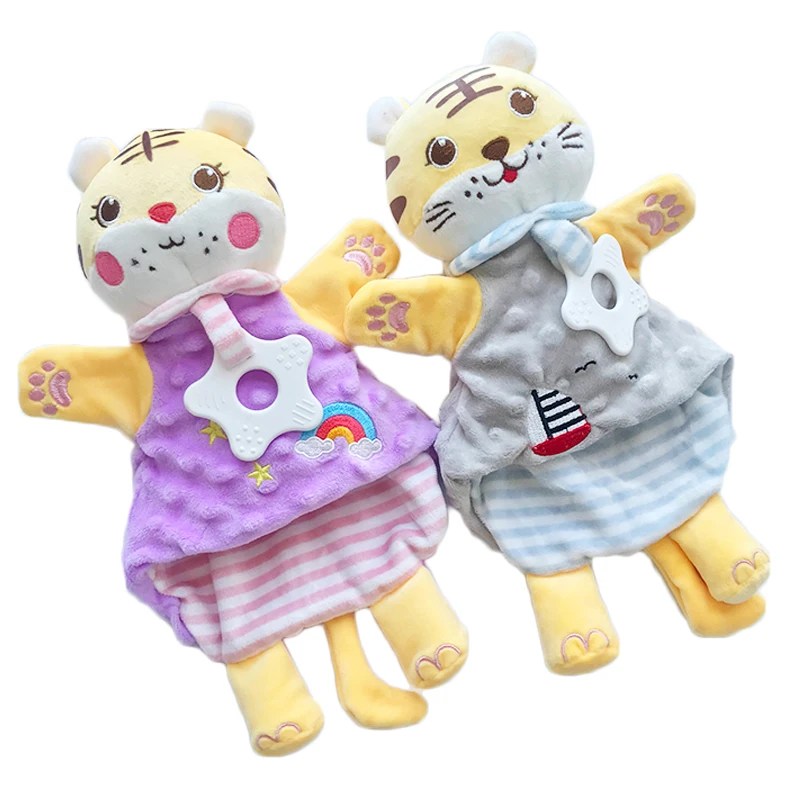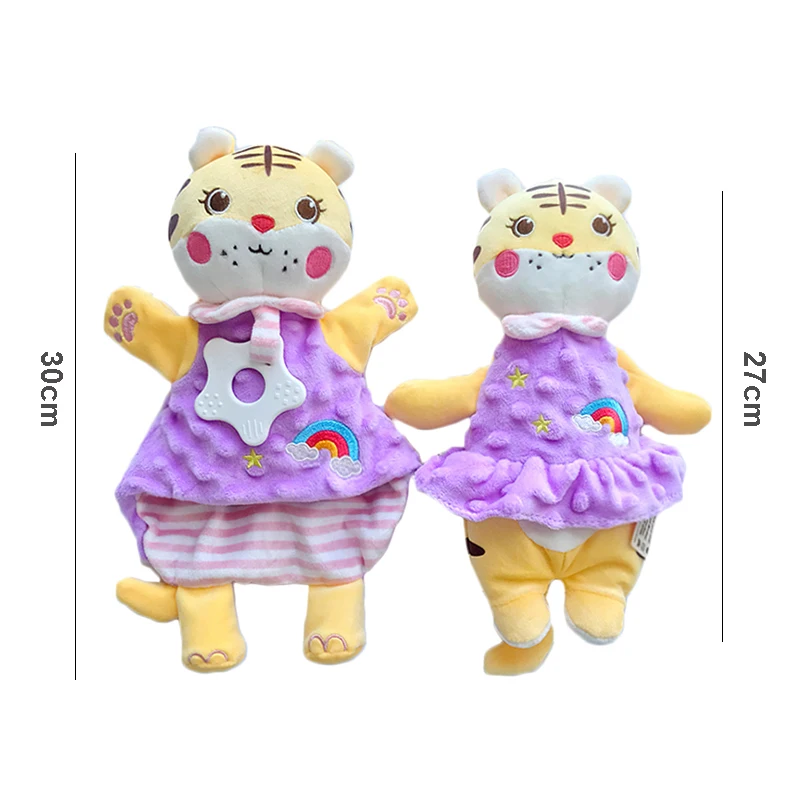 Soft Appease Toys Cartoon Tiger Baby Soothe Reassure Sleeping Animal Blankie Towel Bebes Hand Puppets Toy